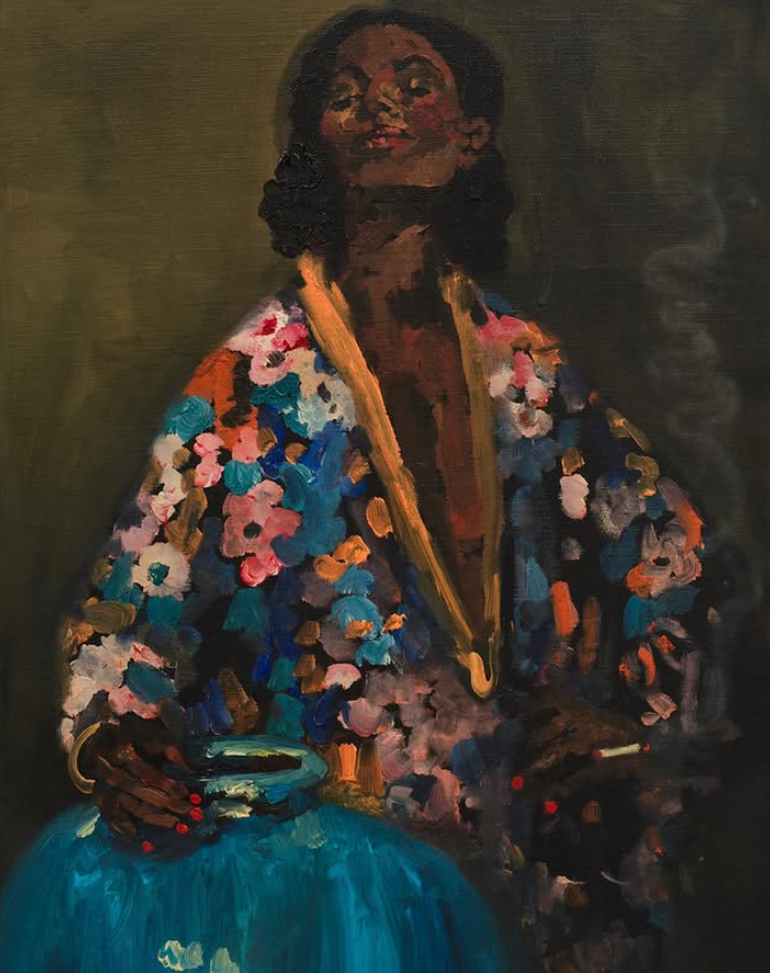 Mckinney's practice is an ongoing exploration of portraiture, color, and composition informed by an expansive dialogue with art history. Her figures emerge from deep, dark backgrounds reminiscent of Zurbarán's haunting portraits of saints and martyrs. With gestural brushstrokes and flickers of brilliant pink and orange oil paint, Mckinney evokes the work of Matisse while the striking quality of light in her scenes—and its narrative implications—echo the paintings of Vermeer. Perhaps most notably, Mckinney draws on the intense, unsettling voyeurism of Hopper with her masterfully-crafted interiors, occasionally borrowing his compositions directly, yet filling them with her own figures, her own details, her own vision. In these paintings, Mckinney ultimately enchants viewers with her expert handling of paint, the subtle emotional pull of her figures, and her radical commitment to beauty.